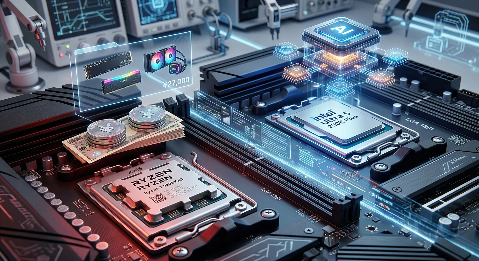 この記事では「27,000円差は何に使うべきか」を軸に、ゲーミング・マルチスレッド・iBOT・消費電力・プラットフォームコストの5軸で比較します。「9800X3Dに踏み切れない予算で250K Plusを選ぶ合理的な理由」と「やはり9800X3Dに投資すべき用途」を数字で整理します。