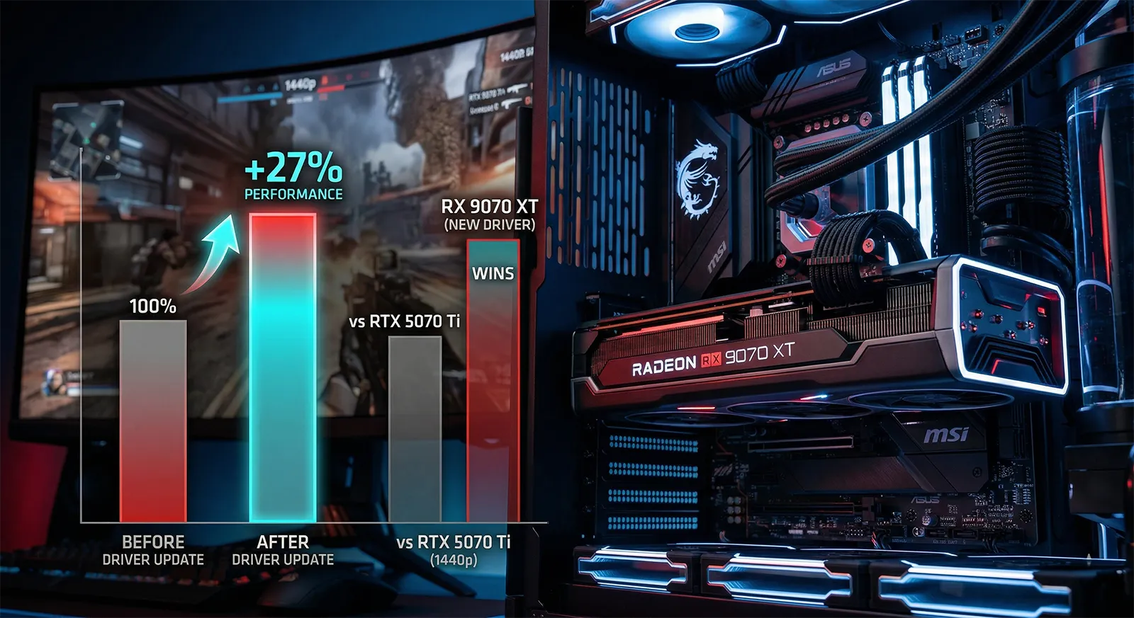 RX 9070 XTがドライバーで最大+27%——AMDファインワイン現象2026年版、RTX 5070 Tiを1440pで逆転した現実