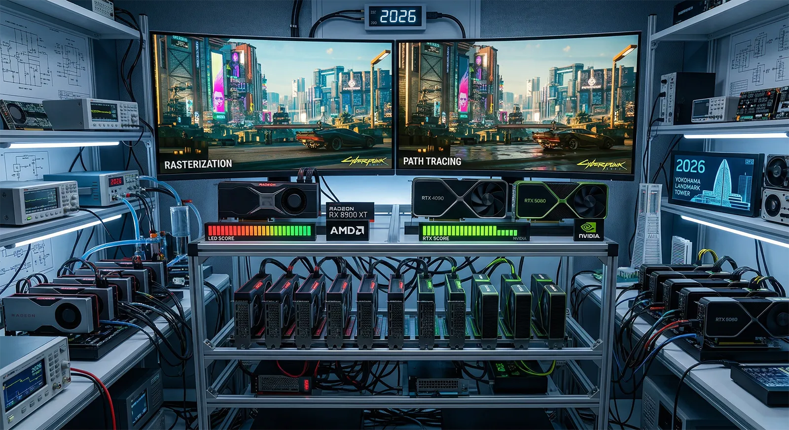 2020年発売のゲームが、2026年でも「最も重い」タイトルであり続けています。パストレーシング(Overdrive Mode)は現世代最高峰の描画負荷であり、RTX 5090でさえ4Kネイティブでは27fpsしか出ません。そしてRTX 5080はパストレでRTX 4090より遅いという逆説も実在します。一方ラスタライゼーションではRX 9070 XTがRTX 5070を21%上回るという驚きのAMD優位も。15GPU実測データで全貌を解説します。