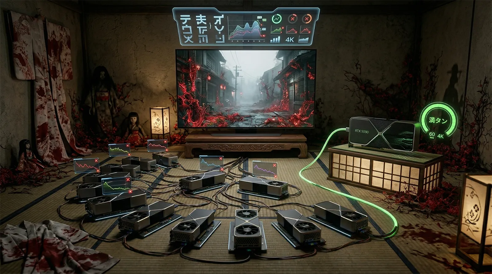 和製J-ホラーUE5で4K 60fpsを出せるのはRTX 5090のみ——16GPU実測解説