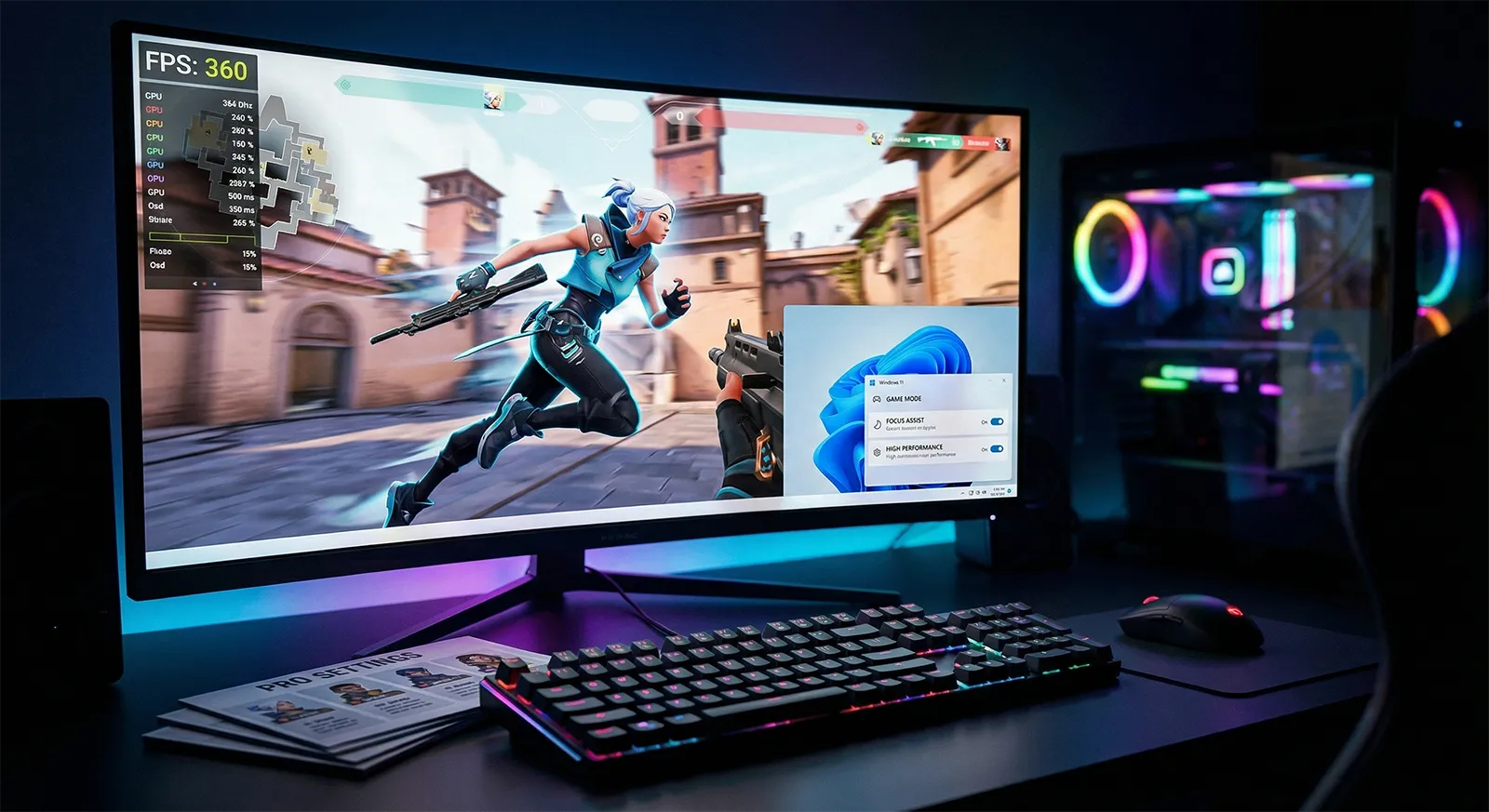 VALORANTはDLSS・FSR・XeSSなどのアップスケーリング技術を非搭載です。ApexやFortniteと違い、設定の直接最適化とWindows調整だけがfps改善の手段になります。その分、設定の正解・不正解がスコアにそのまま出やすいゲームでもあります。
