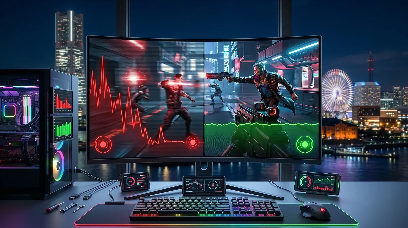 オーバーレイに「avg 180fps」と表示されているのにゲームがカクつく——この状況に心当たりがあるなら、見るべき数字を間違えています。平均fpsはカクつきを隠す数値です。本当に見るべきは1% Lowです。