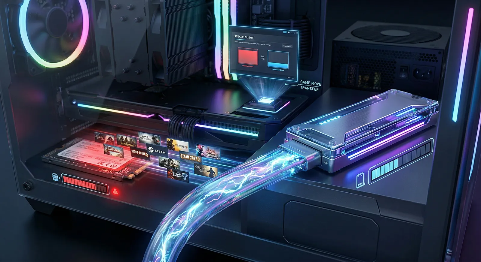 SSDの容量がゲームで埋まってしまった。新しいドライブを増設したけど、既存ゲームの移動方法がわからない――PCゲーマーなら一度は直面する問題です。最近の大型タイトルは1本で100GB超が当たり前で、1TBのSSDでも5〜6本インストールすれば残量が危険水域に入ります。